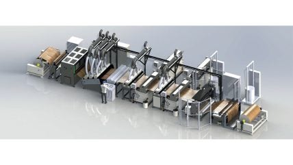 The resulting sustainable flooring product consists of approximately 55% leather fibers, 25% natural rubber as a binder, 10% water, and 10% plant-based oils. The same 1600 mm HotCoating system can also be used for paper or thermoplastic films, opening new possibilities for cladding large-format, three dimensional elements such as door panels.